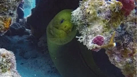 11-15-24 Coral, Tropical fish and Moray Eel swimming at Molasses Reef, Key Largo 11-15-24
